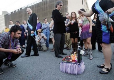 The 2013 edition of the miniature Mardi Gras parade formerly known as ‘tit Rex, featuring tiny floats towed through the streets by their makers like Chihuahuas on leashes, was a brilliant little affair. This year’s theme was The Bare Minimum, yet the toy float builders seemed to maximize their artistic and satiric skills better than ever.