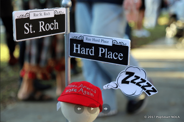 Posted on February 18, 2017 by davidleesimmons – popsmartnola Well, he had it coming. And with at least one float, you could make the argument he came close. The tiny Krewe of ’tit Rex was big on satirizing our golden new president, Donald J. Trump — the “J” apparently stands for “Jesus Effing Christ a Lot of People Don’t Like Me Down There” — in a parade held Saturday (Feb. 18) and starting on St.